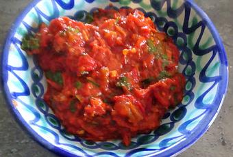 La taktouka est une savoureuse salade marocaine de poivrons et de tomates.
