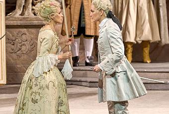 Le Rosenkavalier de l'Opéra d'État de Vienne dans la mise en scène d'Otto Schenk, les décors de Rudolf Heinrich et les costumes d'Erni Kniepert fut pour la première fois représenté en 1968 et va bientôt connaître sa quatre centième représentation. Cette mise en scène qu'on n'a plus à présenter a surtout l'avantage d'être efficace et de coller au livret, elle séduit par son côté nostalgique et a cet aspect confortable des choses bien connues. On retrouve donc avec plaisir le luxe de la somptueuse chambre rococo olivâtre et marron glacé de la maréchale avec son lit à baldaquin de velours vert, son mobilier dix-huitième et son magnifique plafond en coquille, le palais Faninal plus pompeux avec ses grands escaliers et ses balustrades que décorent des putti bien dodus, et la sombre atmosphère de l'auberge misérable en sous-sol dans laquelle la fausse Mariandel donne rendez-vous au baron Ochs pour le confondre. On vient pour la musique de Strauss, pour l'orchestre et les interprètes, la distribution est aussi luxueuse que le décor et l'orchestre qui en 2019 fêtait la millième représentation viennoise du Chevalier à la Rose déploie les ors ciselés de la somptueuse musique de Strauss sous la direction précise, différenciée et toute en puissance de Philippe Jordan, dont on se souviendra qu'il avait donné en 2020 une nouvelle étude musicale de l'oeuvre, dont il fait briller les couleurs sans donner dans l'emphase.