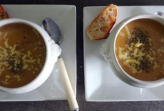 Cette soupe de légumes abondamment garnie de fromage peut faire concurrence à la soupe à l'oignon des restaurateurs des Halles de Paris qui avaient ajouté du fromage râpé à la soupe pour la rendre bien plus nourrissante pour les travailleurs et les fêtards noctambules. On appelait cette Gratinée des Halles la Soupe d'ivrognes ! Si vous avez abusé un peu de boissons alcooliques à l'occasion des fêtes de fin d'année je vous conseille cette soupe qui tout comme la est considérée comme un plat de détox ! L'avantage de cette recette est que vous pouvez la préparer d'avance et la garnir au moment de la servir à vos fêtards avec encore un peu de fromage râpé. Vos invités vous en seront reconnaissants. Et rappelez-vous : Quand on tient à quelqu'un on le retient !