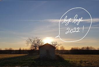 Qu'est-ce que je fais du temps gagné, me direz-vous ? J'écris, je baye** aux corneilles, je m'abîme dans la contemplation des gens qui s'ennuient sur TikTok, j'écris un peu plus de billets de blog, je joue un peu plus avec le chien, je lis davantage, j'écris bye bye 2022 sur un cliché de crépuscule saisi en Charente. Mais pour revenir au bouton d'ascenseur, je suggère un système de récupération d'énergie, dispositif qu'on installerait sous le bouton d'appel d'ascenseur, à chaque étage. Les milliers d'appuis agacés, impatients, inutiles, fourniraient assez d'électricité pour alimenter le micro-ondes ou la machine à café.