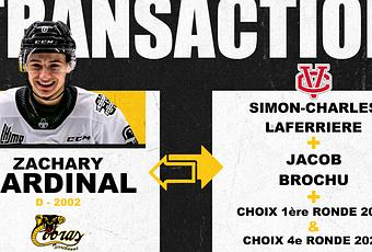 Les Cobras ont également acquis le défenseur de 20 ans Zachary Cardinal en provenance de l’Armada de Blainville-Boisbriand de la LHJMQ.