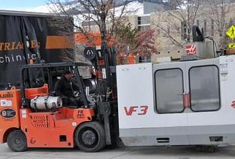 Un conducteur livre une fraiseuse CNN à l’atelier de technologie de machines-outils Woody Wurster du Western Nevada College en décembre.