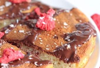 - Retournez le pancake, laissez cuire encore 3min. Ajoutez les topping de votre choix, ici siace choco maison et copeaux de coco @koro_fr et dégustez !