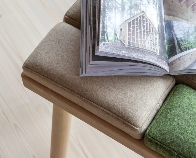 Quant aux matériaux qui composent cette création, ils ont été sourcés pour apporter la meilleure qualité, durabilité, tout en respectant l’environnement. Par souci de transparence, les créatrices du studio Foy donnent la composition de chaque élément jusqu’à l’huile de traitement utilisée pour le bois. La structure du banc est fabriquée en Norvège, en bouleau massif. La surface du bois est traitée Osmo TopOil high solid, 3068 Naturell, une huile composée d’huiles et de cires végétales naturelles. Cette protection permet d’avoir une surface hydrofuge et facile à entretenir. Le tissu des coussins est fait à 100% de laine. Ce textile a été choisi pour ses propriétés isolantes et sa capacité à absorber l’humidité, ce qui convient à tous les climats. Il a aussi pour avantage d’être une ressource renouvelable et d’avoir une excellente longévité. Vous l’aurez compris, l’objectif du studio Foy est de vous faire bénéficier d’une création durable et non pas de vous en faire racheter une chaque année !