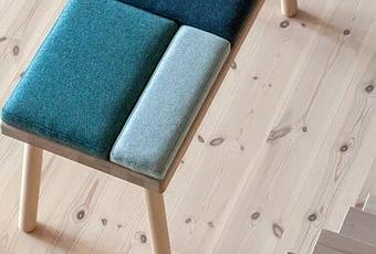 Pusle est une création à la fois simple et complexe. On retrouve une structure classique en bois à quatre pieds, mais l’originalité réside dans les formes qui constituent l’assise du banc. La plaque de bois a été perforée de nombreux trous, rappelant les structures des Lego. Ces trous circulaires sont faits pour accueillir les coussins, permettant d’obtenir un banc confortable. En effet, le banc Pusle vient en plusieurs pièces. Différents coussins de différentes tailles et couleurs sont à disposer sur la surface en bois.