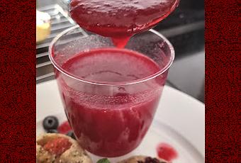 Ce coulis fait changement de celui qu'on fait habituellement aux fraises et le goût est parfait; ni trop acidifié, ni trop sucré, le juste équilibre !! Le coulis peut servir autant pour napper des poitrines de poulet cuites, des boulettes de viande que des crêpes, yogourt, crème glacée etc. La recette vient du site de, di Statio. **J'ai réduit en purée avant de verser dans le chaudron**3 tasses de canneberges fraîches ou surgelées, dégelées