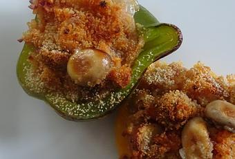 Farcir les poivrons avec ce riz et saupoudrer de chapelure