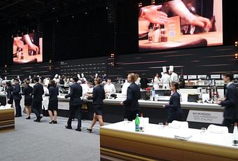 C’est le moment qu’on préfère chez Saga Bocuse et pour y goûter il faut être matinal. Les équipes s’activent sous les regards du jury Cuisine qui ne perd pas une miette de leur mode d’organisation. Jérôme Bocuse salue toutes les équipes à tour de rôle. Les élèves de l’Institut Bocuse qui devront présenter les plats, font un dernier entraînement en réel, sous le regard de leur chef.