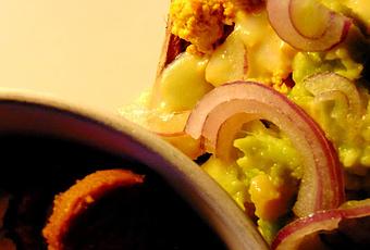 On ajoute de la guacamole, ou simplement comme ici, un avocat écrabouillé avec du jus de lime.