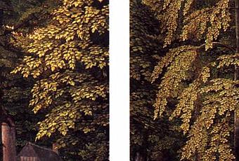 comment s’effectue ce secret travail du cadre, comment le supposé « dehors » participe au soi-disant « dedans » de l’oeuvre (…) ce retable conçu en 1510 par Gérard David, et d’abord ses volets extérieurs, lesquels, repliés, représentent un paysage de forêt et cachent, soustraient à notre curiosité le panneau principal figurant, lui, une Nativité. (…) ces deux pans de feuillage font office de seuil. Il faut traverser la forêt — espace de solitude et de pèlerinage, à l’écart, en dehors (foris en latin, dont le mot « forêt » serait étymologiquement dérivé ) ; espace de transit (un chemin de terre est là, qui se fraie un passage entre les fûts rapprochés des arbres et dessert un monastère isolé) — avant que le centre (la fable chrétienne) nous soit enfin dévoilé. On n’est encore que sur le bord, à l’orée.
