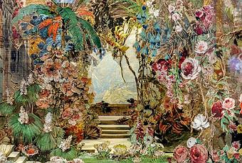 FLOWERS FOREVER, die neue Ausstellung in der Kunsthalle München, zeigt das Modell von Klingsors Garten, ein Projekt des mit Wagner befreundeten Malers Paul Joukovsky, das Max Brückner umsetzte. Zu sehen bis zum 27. August in der Kunsthalle München.