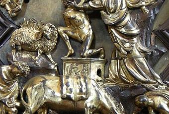 Pour départager celui des sept orfèvre qui réaliserait la porte Nord du baptistère de Florence, on leur donna un an pour traiter un sujet particulièrement trapu : inscrire dans un quadrilobe le septuor du Sacrifice d’Isaac. Seules ont été conservées les réalisations de Brunelleschi et de Ghiberti, ce dernier étant probablement le vainqueur [2].