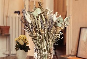 En plus de proposer des fleurs de chanvre cultivées sur les bords de la Loire, ce bouquet comporte des épis de blé, de la lavande, de l’eucalyptus et du limonium.