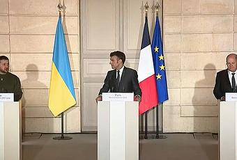 La venue de Volodymyr Zelensky à Paris a été annoncée très tardivement, quelques heures seulement avant son arrivée à Orly dans la soirée, accueilli par Sébastien Lecornu, le Ministre des Armées. Reçu à l'Élysée par le Président Emmanuel Macron mais aussi par le Chancelier Olaf Scholz, le Président ukrainien a été très ému par le soutien franco-allemand et plus généralement européen.