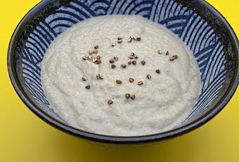 Mixer finement la soupe (j'ai utilisé mon Vitamix). Ajouter éventuellement de l'eau chaude pour obtenir la consistance désirée.Servir chaud. Saupoudrer de graines de sarrasin torréfiées.