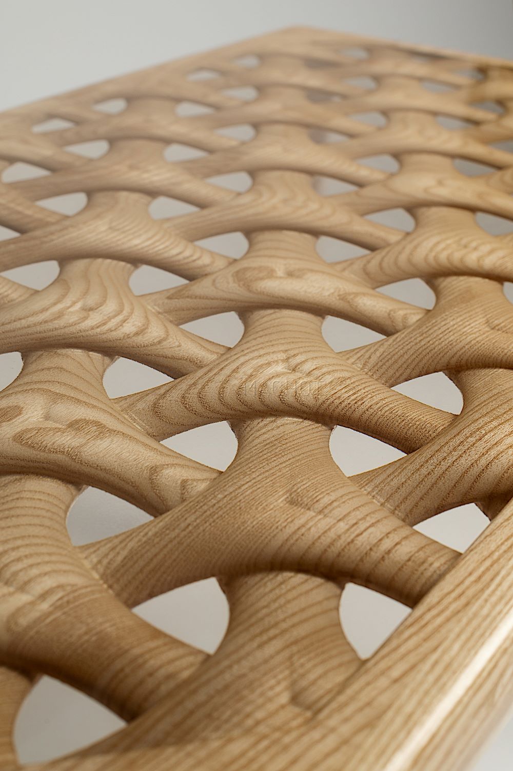 Le motif du plateau ainsi que le nom de cette création rappellent les moucharabieh. Ce sont des cloisons ajourées très présentes dans les architectures des pays arabes. Ces cloisons ajourées sont la base de cette création qui présente des motifs originaux taillés directement dans le bois.