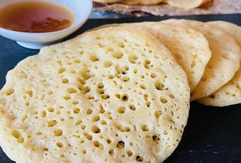 On a donc décidé de faire des baghrirs, ou crêpes mille trous parce que chez nous on ne jette rien et ça nous changeait de ses pancakes. Bien sûr si vous n’avez pas d’eau de coco à jeter, de l’eau du robinet fera parfaitement l’affaire ou encore un lait de soja.