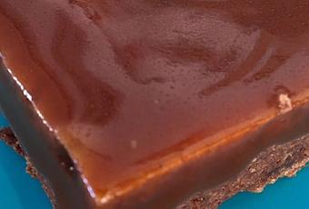 - Laisser refroidir quelques minutes et plonger le dessus des carrés de brownies dans le caramel. Le caramel fige assez rapidement.