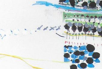 Que reste-t-il du paysage ? Des horizons ? Des feuillages ? Des tableaux ? La nature ? Partout la main de l’homme et ses outils ont façonné ce qu’il voulait montrer, le décor de son existence. Il n’y a plus de nature sauvage. Qui se souvient que le mot même de sauvage a été dénaturé ? Il venait de la forêt (silvaticus, salvaticus, salvage), et la forêt c’était le dehors (foris, en latin). Le dehors est de plus en plus domestiqué. Dans les oeuvres présentées à la galerie Univer sous le titre « Pépinières, jardins », il n’y a pas de maison : souvent un espace vide dans la toile (le plus souvent sur la gauche) et des alignements ou des regroupements de formes évoquant les arbres, les végétaux. Comme si quelque espace était quadrillé et quelque autre espace restait disponible, restait à découvrir, restait à inventer, à écrire. Jeux de couleurs, de formes, de lignes, proposant un étagement ou un étalement selon le regard qu’on y porte. Et les mouvements qu’on y devine laissent penser aux changements à venir.