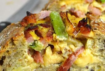 Voici la recette de baguette farcie au bacon et au fromage, un savoureuse baguette farcie façon quiche au fromage et bacon, facile et simple à réaliser pour un repas léger.