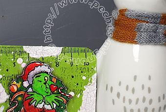 Hello, hello. Voici le petit InkBox réalisé pour Hellofanny du forum « le potager créatif » qui m’en a envoyé un sur le thème de Grinch.