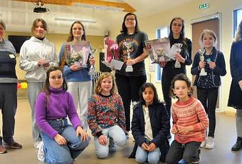 Françoise Lefeuvre et Maïwenn Latruffe-Bossant encadrent les primés du Trophée avec, au centre, Amélie Ladan, qui défendra les couleurs de la Bretagne à Paris en mai prochain - Photo © Ouest-France