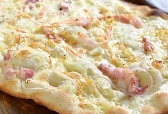 Voici la recette de la Flammekueche gratinée, un savoureuse Flammekueche légère et gratinée, facile et simple à réaliser pour un repas léger.