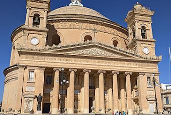 La construction eut lieu selon les plans de l'architecte maltais Giorgio Grognet de Vassé. Elle débuta en mai 1833 et se termina dans les années 1860. Elle serait aujourd'hui la troisième plus grande coupole du monde.Un obus l'atteignit pendant la seconde guerre mondiale sans exploser, ce qui fut considéré comme un miracle.