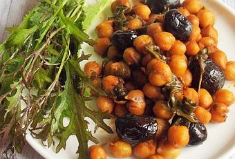 Aujourd'hui, je vous propose une Poêlée de pois chiches très originale et très savoureuse (Vegan) :