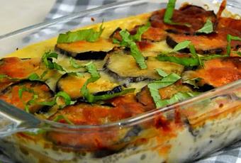 Dans un plat à gratin alternez des couches d’aubergine et de béchamel puis enfournez à 180°C pendant environ 30 minutes.