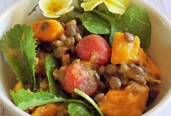 Aujourd'hui, je vous propose une Salade opportuniste aux lentilles (Vegan) :