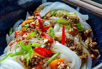 Deux incroyables recettes simples en une aujourd'hui! D'abord cette recette de nouilles Liang Fen de haricots mungo, dont la technique de fabrication en découpant un blog gélatineux est très particulière et donne des nouilles (sans gluten!) légères, au goût neutre et rafraichissantes, délicieuses dégustées froides avec une bonne sauce. Une chouette idée empruntée à Baking Hermann