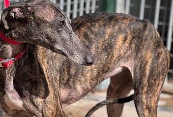 Xéna n'y crois plus abandonnée par son galgueros elle attend depuis juillet 2022 que quelqu un jette un regard sur elle. elle est un peu timide Xena et s'efface petit a petit .