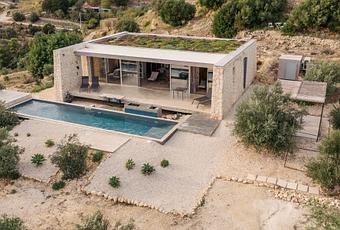 Quelques kilomètres seulement séparent la Casa Agila de la ville sicilienne Noto (site classé au patrimoine mondial de l'Unesco). Du haut de sa colline isolée, la maison de vacances surplombe la campagne environnante, donne sur la mer et la pointe sud-est de la Sicile. Les murs extérieurs en pierre -légèrement en saillie- ainsi que le toit végétalisé la protègent du soleil et du vent. La terrasse offre plusieurs espaces de détente dont une cuisine extérieure prolongée par une grande table à manger. De quoi profiter d'un cadre convivial avec les invités, le chant des grillons en fond sonore.