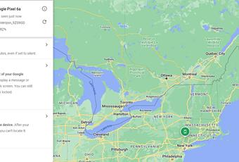 Si vous pensez que votre téléphone est déplacé vers un autre emplacement, vous pouvez choisir Emplacement de la piste pour obtenir une vue actualisée de la position de votre téléphone toutes les 15 minutes. Vous pouvez également nettoyer le téléphone si vous craignez que quelqu’un ait accès à vos données. Frappez le Efface les données icône à réinitialiser le téléphone aux paramètres d’usine(Ouvre dans un nouvel onglet).