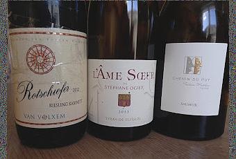 Mosel-Saar-Ruwer, Riesling Kabinett, Rotschiefer 2012, van Volxem: un superbe nez sur la poire williams, avec une pointe saline légèrement perlante, fraîche, énergique et qui apporte du peps. Fine sensation « douce », veloutée. A l’aération, des notes pétrolées apparaissent, complétées par des composantes plus capiteuses. Attaque en bouche vive, douce et saline, sur une grande complexité et un équilibre magistral. Un joli gras fruité se mêle avec des notes florales plus consistantes. L’ensemble est tenu par une grosse acidité intégrée. De l’énergie qui vient tapisser les papilles. Finale à l’avenant, sur des touches salines, des amers fins et une impression de mâche. Sensuel et charmeur sur un registre frais. Excellent ++