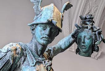 [FR] Résidence de Munich, statue de bronze "Persée avec la tête de Méduse" de Hubert Gerhard, 1585-90 (modèle : "Perseo con la testa di Medusa" de Benvenuto Cellini, 1545-54, Loggia dei Lanzi, Florence, Italie).
