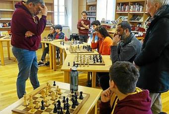 " Une partie simultanée est une rencontre entre un fort joueur, face à de nombreux adversaires généralement d'un niveau amateur, a expliqué Sarah Loudier, présidente du club. Les échiquiers sont disposés en cercle ou en carré autour du maître, celui-ci ayant les pions blancs sur chacun des échiquiers. Le maître passe d'un échiquier à l'autre dans un ordre déterminé, et ses adversaires jouent au moment où il se présente devant leur échiquier ".