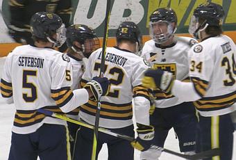 Hockey masculin CSS Lednekov célèbre son but