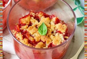 - Parsemer le crumble au dessus des fruits dans les verrines