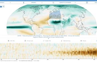 Le sixième rapport du groupe 1 du GIEC (Groupe d’experts intergouvernemental sur l’évolution du climat) publié en août 2021 s’accompagne d’un atlas interactif. Il permet de visualiser les bouleversements climatiques selon différentes variables et à différentes échelles continentales et régionales. L’atlas permet de configurer différents scénarios et d’en projeter les conséquences à long terme (hausse des températures, élévation du niveau de la mer, événements extrêmes). L’atlas permet la sélection de variables atmosphériques, océaniques ou socio-économiques (prochainement disponible).