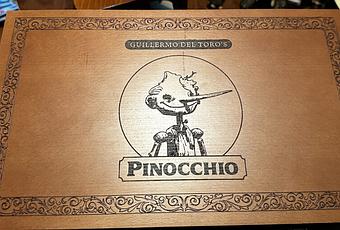 Ce superbe coffret en bois contient la maquette de Pinocchio, une carte signée par Guillermo del Toro, Mark Gustafson qui a réalisé le film avec del Toro et le coscénariste Patrick McHale.