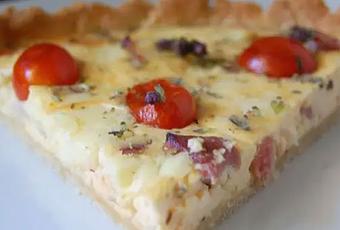 Voici la recette de quiche au fromage de chèvre frais et lardons, une savoureuse quiche légère à base de fromage de chèvre facile et simple à réaliser pour un repas léger.
