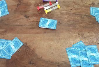 Après avoir redressé le sablier blanc vous pouvez toutes et tous regarder vos cartes. A partir de la 1ère joueuse/du 1er joueur placez une carte de votre main face visible devant vous.