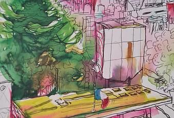 On m'a offert ce beau livre pour mon anniversaire et j'ai ainsi fait la connaissance de Virginie Broquet une peintre qui a été édité à de nombreuses reprises et qui fait surtout des croquis, façon aquarelle des lieux qu'elle visite. C'est apparemment une grande voyageuse et à chaque fois elle fait une série de croquis comme d'autres tiendraient un journal de bord.
