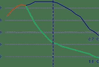 Une forte accélération des politiques actuelles pourrait permettre de faire un peu mieux que 2,7°. En revanche, le schéma 1,5°C est aujourd’hui hors de portée dans la mesure où il nécessiterait de baisser les émissions mondiales de moitié d’ici 2030.