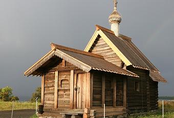 Le prototype de l'église du skite est l'église en bois de la Résurrection de Lazare à Kizhi, en Carélie (photo ci-dessus), qui date des XIV-XVI siècles, et a été sérieusement restaurée dans les années 2000.