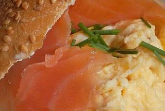 3) Répartir les oeufs brouillés sur les bagels. Ajouter 1 tranche de saumon et un peu de persil ciselé.