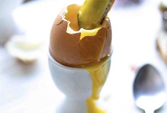 Oeuf à la coque, pesto d'ail des ours, mouillettes au Beaufort