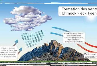 Enfin, plus l'air se réchauffe, plus le soleil brille et plus cela dégage l'énergie nécessaire pour que la neige se transforme directement en vapeur. Lorsque ces circonstances se combinent parfaitement sous forme de vents chauds et secs (Chinook dans les Rocheuses, Foehn dans les Alpes), l'évaporation et la sublimation sont soudainement accélérées.
